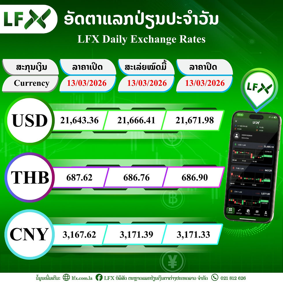 ບໍລິສັດ ຕລຕ ຮູ້ສຶກເປັນກຽດຢ່າງຍິ່ງທີ່ໄດ້ມີສ່ວນຮ່ວມໃນການຈັດວາງສະແດງຜະລິດຕະພັນ ແລະ ເຄື່ອງທີ່ລະນຶກຂອງບໍລິສັດ ຕລຕ ຮ່ວມກັບ ທະນາຄານແຫ່ງ ສປປ ລາວ ໃນກິດຈະກຳວາງສະແດງສິນຄ້າໂອດັອບ (ODOP) ເນື່ອງໃນໂອກາດກອງປະຊຸມລັດຖະບານເປີດກວ້າງ ຄັ້ງທີ II ປະຈຳປີ 2025 ເຊິ່ງຈັດຂຶ້ນໃນວັນທີ 12–13 ມັງກອນ 2026 ທີ່ຫໍປະຊຸມແຫ່ງຊາດລາວ. ໃນໂອກາດດັ່ງກ່າວ ບໍລິສັດໄດ້ໃຫ້ຄຳແນະນຳ ແລະ ຂໍ້ມູນກ່ຽວກັບການໃຫ້ບໍລິການແລກປ່ຽນເງິນຕາຕ່າງປະເທດ ຜ່ານ LFX ແກ່ຜູ້ເຂົ້າຮ່ວມງານ.