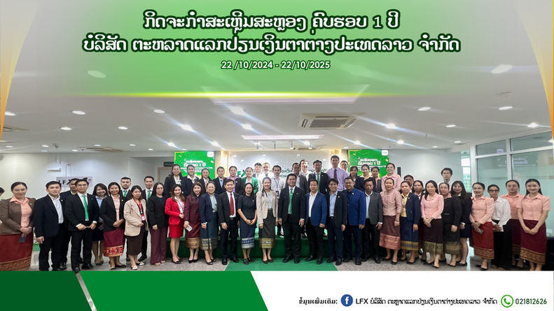 ໃນວັນທີ 30 ຕຸລາ 2025 ທີ່ຜ່ານມາ ບໍລິສັດ ຕະຫຼາດແລກປ່ຽນເງິນຕາຕ່າງປະເທດລາວ ຈໍາກັດ (ບໍລິສັດ ຕລຕ ຫຼື LFX) ໄດ້ຈັດກອງປະຊຸມເສວະນາ ເພື່ອສ້າງກິດຈະກຳສະເຫຼີມສະຫຼອງວັນສ້າງຕັ້ງ ບໍລິສັດ ຕະຫຼາດແລກປ່ຽນເງິນຕາຕ່າງປະເທດລາວ ຈຳກັດ ຄົບຮອບ 1 ປີ (22 ຕຸລາ 2024-22 ຕຸລາ 2025) ພາຍໃຕ້ຫົວຂໍ້ “ການປະກອບສ່ວນຂອງຕະຫຼາດແລກປ່ຽນເງິນຕາຕ່າງປະເທດລາວ ຕໍ່ການດຸນດ່ຽງເງິນຕາຕ່າງປະເທດ ໃນສັງຄົມ” ໂດຍໄດ້ຮັບກຽດການເປັນປະທານໂດຍ ທ່ານ ສຸລິສັກ ທຳນຸວົງ, ຮອງຜູ້ວ່າການ ທະນາຄານ ແຫ່ງ ສປປ ລາວ ແລະ ການເຂົ້າຮ່ວມເປັນ Panelist ຈາກຕາງໜ້າທະນາຄານສະມາຊິກທີ່ເຊື່ອມຕໍ່ການໃຫ້ບໍລິການແລກປ່ຽນເງິນຕາ, ລູກຄ້າຜູ້ໃຊ້ບໍລິການຕົວຈິງ, ທະນາຄານແຫ່ງ ສປປ ລາວ (ທຫລ) ໃນນາມຜູ້ຄຸ້ມຄອງ ແລະ ບໍລິສັດ ຕລຕ ໃນນາມຜູ້ໃຫ້ບໍລິການ. ນອກຈາກນັ້ນ, ຍັງມີຄະນະດາກົມ ແລະ ທຽບເທົ່າຂອງ ທຫລ, ຄະນະອຳນວຍການ ແລະ ຜູ້ຕາງໜ້າຈາກທະນາຄານທຸລະກິດໃນ ສປປ ລາວ ແລະ ບັນດາບໍລິສັດ-ອົງການຈັດຕັ້ງທີ່ກ່ຽວຂ້ອງກໍ່ເປັນກຽດເຂົ້າຮ່ວມກອງປະຊຸມໃນຄັ້ງນີ້.